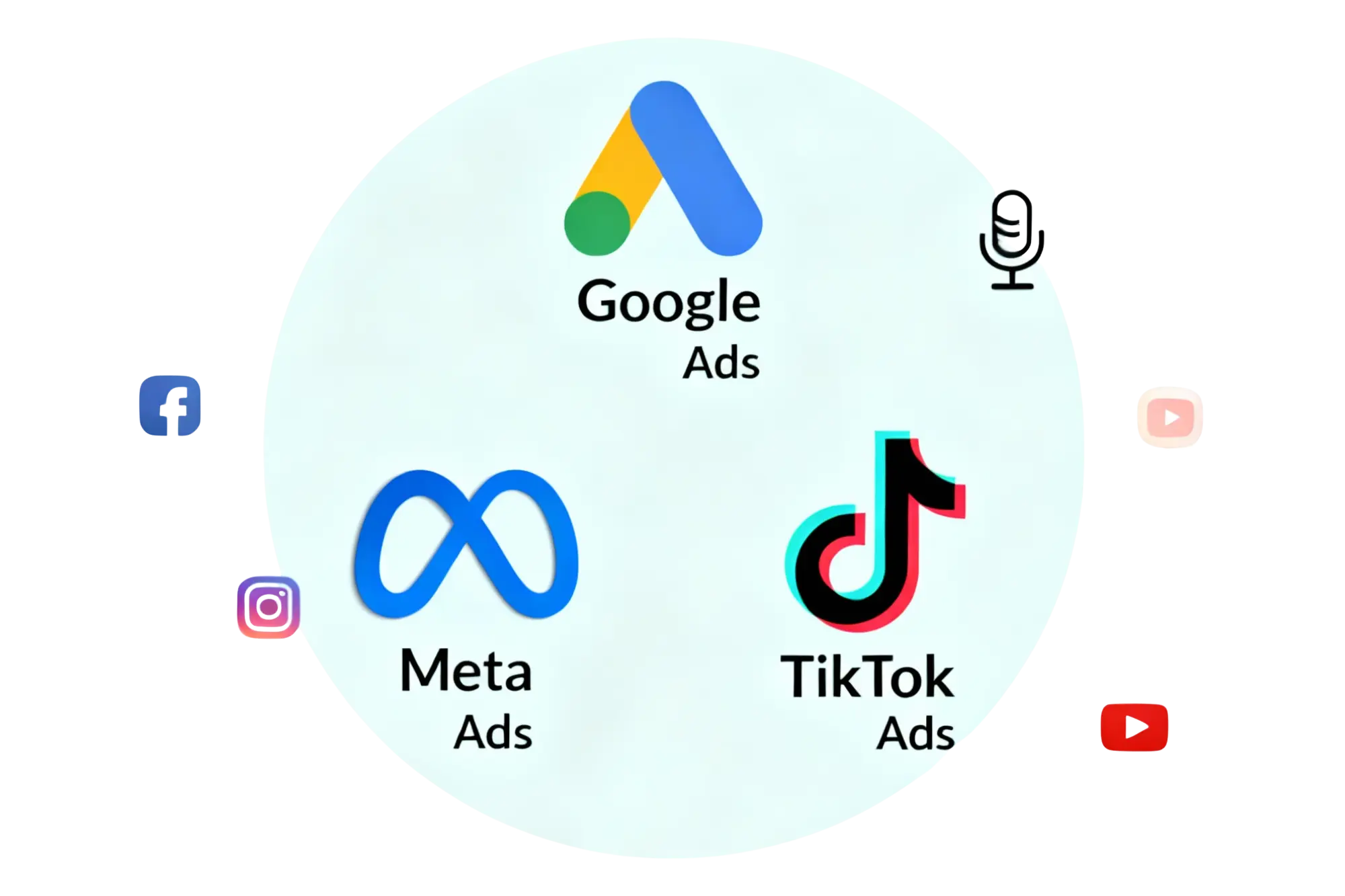 Enfoque estratégico y personalizado que convierte la inversión en Meta Ads, TikTok Ads y Google Ads en un crecimiento empresarial rentable, llegando a tu cliente de forma totalmente directa.